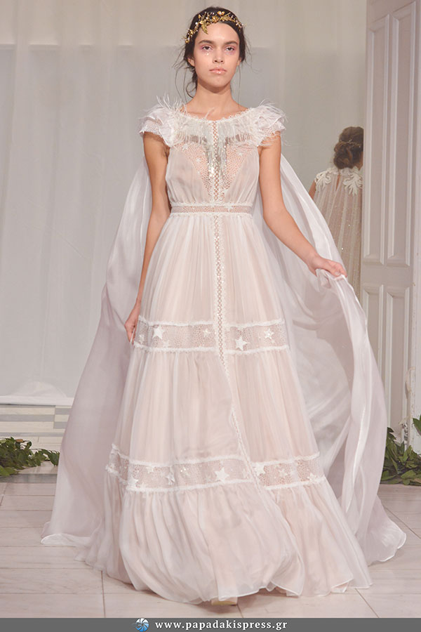 Εξειδικευμένη στα νυφικά η ανερχόμενη σχεδιάστρια Δήμητρα Αντωνέα εντυπωσίασε και πάλι με τα πανέμορφα νυφικά που προτείνει για το 2018. Κεντημένα όλα στο χέρι με πανάκριβα υφάσματα κάποια σε ντεγκραντέ mint αποχρώσεις και γραμμή που μεταμορφώνει την νύφη σε πριγκίπισσα του παραμυθιού. Πάντοτε μαζί με τις δημιουργίες της Δήμητρας Αντωνέα τα χειροποίητα παπούτσια της Κατερίνας Σαβράνη.