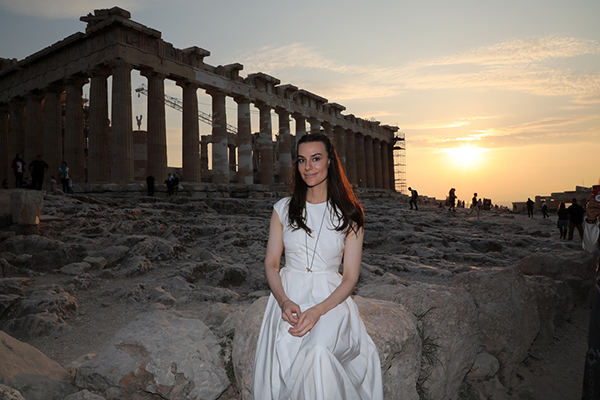Η Ariana Rockefeller στην επίσκεψή της στην Ακρόπολη με δημιουργία Zeus&Dione