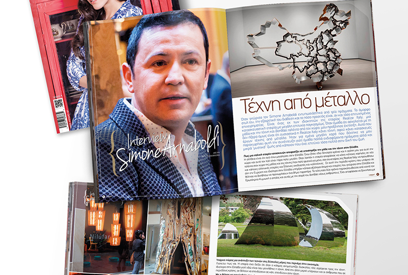 Όταν γνώρισα τον κο Simone Arnaboldi εντυπωσιάστηκα από τρία πράγματα. Το όμορφο στυλ του, την εξαιρετική του διάθεση και το πόσο προσιτός είναι, αν και τόσο επιτυχημένος επιχειρηματίας. Ο κος Simone είναι ένας εκ των ιδιοκτητών της εταιρίας Realize Italy, μια κατασκευαστική εταιρία με μεγάλη επιτυχία παγκοσμίως. Όταν έμαθα ότι ασχολείται και βοηθάει ταλέντα από τον χώρο της μόδας και της τέχνης μου προξένησε έκπληξη. Αυτό που δεν ήξερα όμως είναι ότι ουσιαστικά η Realize Italy κάνει τέχνη, αφού κάνει κατασκευές έργων τέχνης από μέταλλο…