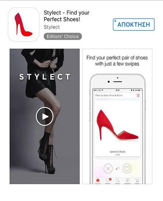 Θεωρείται το «προσάναμμα» στην αγορά υποδημάτων. Αυτό το app θέλει να σας βοηθήσει να βρείτε τα παπούτσια των ονείρων σας. Με πάνω από 50.000 στυλ, από παπούτσια και σχεδιαστές να κυμαίνονται από Christian Louboutin μέχρι Nike με βάση το στυλ που σας αρέσει. Το Stylect σας επιτρέπει να φιλτράρετε την αναζήτησή του παπουτσιού σας με βάση το χρώμα, την τιμή ή το στυλ. Μπορείτε επίσης να δημιουργήσετε το παπούτσι που θα θέλατε να είχατε και να το αγοράστε απευθείας μέσω του app.