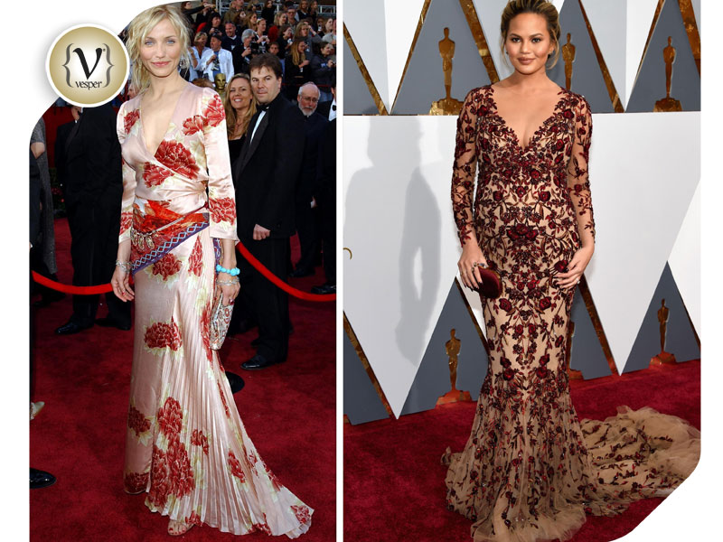 Cameron Diaz – Emanuel Ungaro 2002/ Chrissy Teigen – Marchesa 2016