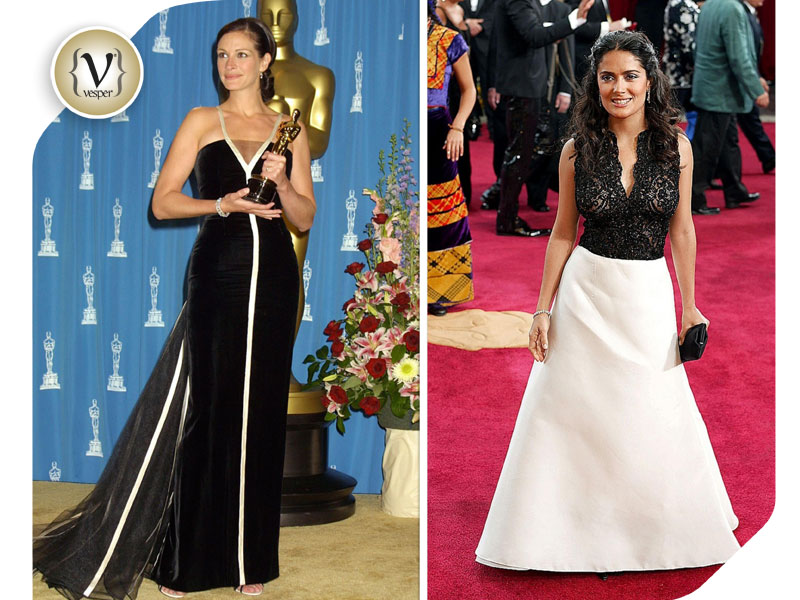 Julia Roberts – Valentino 2002/ Salma Hayek – Carolina Herrera 2003