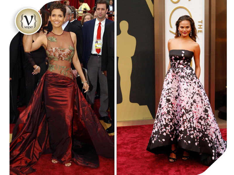 Halle Berry – Elie Saab 2002/ Chrissy Teigen – Monique Lhuillier 2014