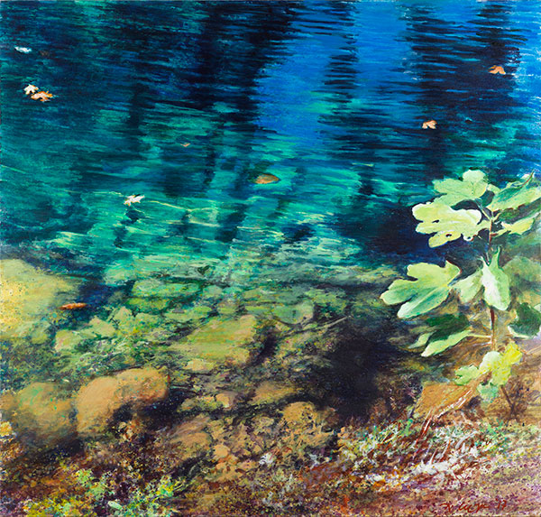Water Fragment with Fig Leaves, 2017, mixed media, 100x105cm