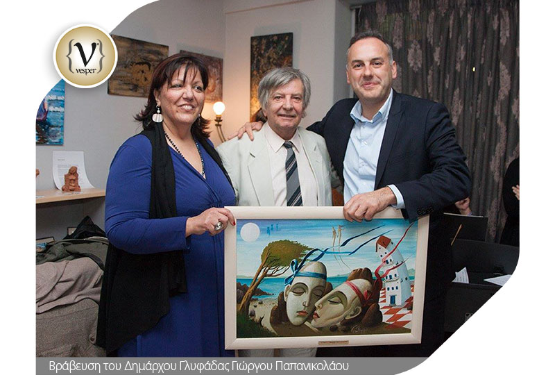 Το κλείσιμο της έκθεση έγινε με ένα όμορφο coctail party όπου εικαστικοί, κοινό και άνθρωποι από τον χώρο της τέχνης την τίμησαν με την παρουσία τους. Στην εκδήλωση παραβρέθηκε και ο δήμαρχος Γλυφάδας κος Γιώργος Παπανικολάου ο οποίος μάλιστα βραβεύτηκε για το πολιτιστικό και κοινωνικό του έργο. Το έργο που του δωρήθηκε με την ονομασία “πάντα μαζί ..” του κορυφαίου ζωγράφου Κων/νου Γεωργόπουλου, συμβολίζει την αγάπη, την φιλία, την ενότητα, την αλληλεγγύη των ανθρώπων, αξίες που διέπουν το Σωματείο Καλλιτεχνόραμα καθολικά. Την βραδιά έντυσαν με μουσική και τραγούδι η δασκάλα κα Γιάννα Χατζηγεωργίου και οι τελειόφοιτοι μαθητές από το “Ουράνιο Ωδείο”.