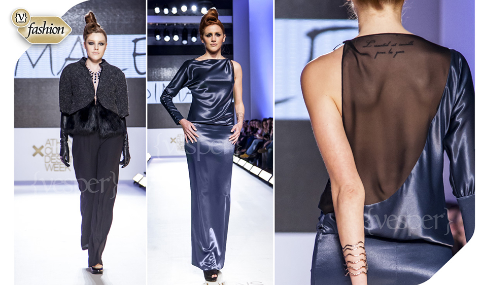 Αν θέλεις να προσθέσεις ενδιαφέρον σε μια επίσημη εμφάνιση, τότε σίγουρα πρέπει να διαλέξεις μια δημιουργία DIMALE από την pret-a-porter κολεξιόν τους για το Φθινόπωρο- Χειμώνα ’15 – ’16. Ενδιαφέροντα κοψίματα, κάποια τόσο sexy όσο χρειάζεται, συνδυασμένα με διαφάνεια. Πολυτελή υφάσματα όπως μετάξι, σατέν, τουίντ και μοχέρ γούνα. Δυναμική, γοητευτική και με αυτοπεποίθηση, αυτή είναι η γυναίκα DIMALE, του σχεδιαστικού δίδυμου των Αλέξανδρου Νικολόπουλου και Δημοσθένη Δημάκου.
