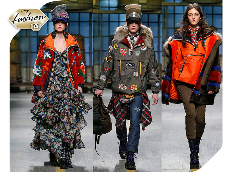Οι άνδρες και οι γυναίκες των Dsquared2 για το Φθινόπωρο-Χειμώνα 2017-2018 θα έχουν ένα νέο style attitude. Το glamour συναντά to grunge «GLUNGE» σε μια μεγάλη και τολμηρή σειρά. Τα look ανδρών και γυναικών έχουν σχεδιαστεί ισότιμα. Πλούσιες, θηλυκές και τραχείς λεπτομέρειες εμφανίζονται σε παρόμοια κομμάτια.