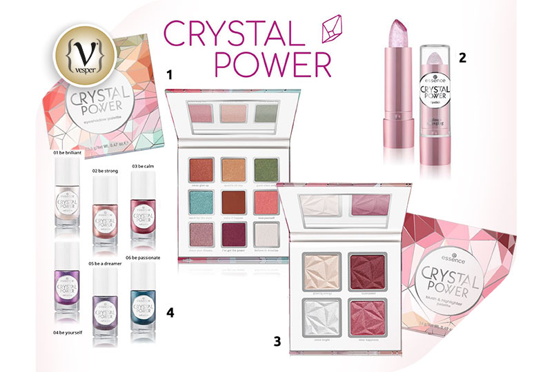 Η σειρά Crystal Power, για παράδειγμα, διαθέτει προϊόντα εμπνευσμένα από αστραφτερούς κρυστάλλους και πολύτιμους λίθους που θα φέρουν μια θετική νότα στη συλλογή ομορφιάς σας, χάρη στα χρώματα, τις υφές και την απίθανη συσκευασία τους. Από τις πούδρες σε μορφή σκόνης και τα λαμπερά highlighters, σε μια ποικιλία προϊόντων για τα μάτια και τα χείλη, η νέα συλλογή της essence έχει όλα όσα θα θέλατε.