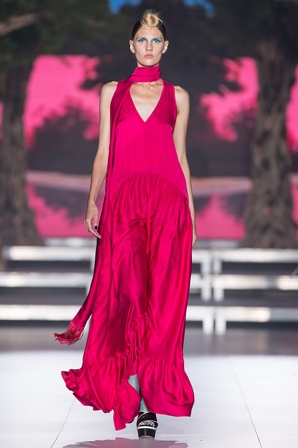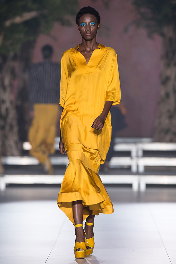 Τα υλικα που έχουν χρησιμοποιηθεί είτε είναι φυσικά, όπως μετάξι, βαμβάκι και βισκόζη είτε είναι τεχνητά όπως τεχνητό δέρμα φιδιού και κροκοδείλου, ακόμα και οι γυαλιστερές σχεδόν υγρές μουσελίνες δημιουργούν μια αίσθηση οικειότητας και γαλήνης.