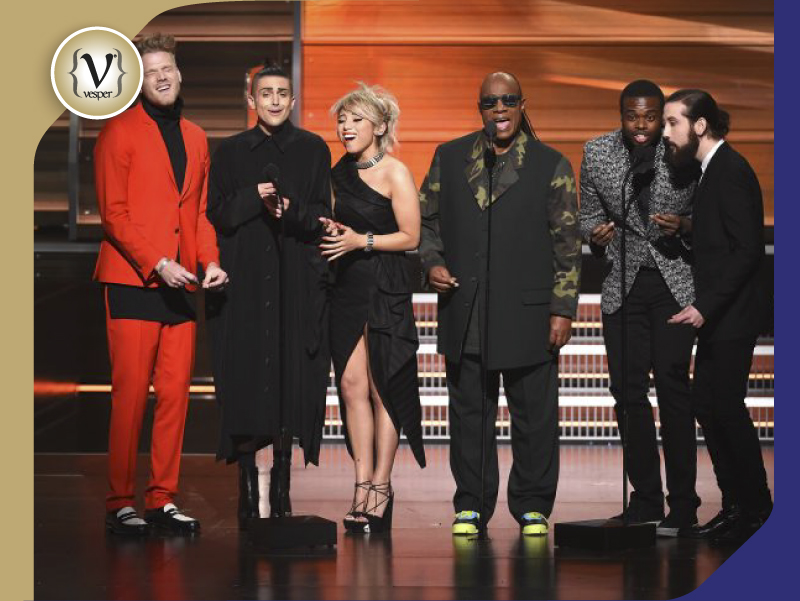 GRAMMY_Awards_2016-36Οι Pentatonix τραγουδώντας μαζί με τον Stevie Wonder