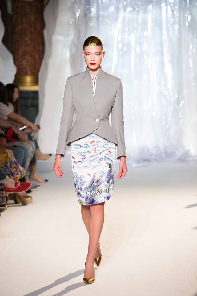 Το γυναικείο φόρεμα σίγουρα έκλεψε την παράσταση καθώς ήταν εμπνευσμένο από το cheongsam, ένα κινέζικο παραδοσιακό επίσημο φόρεμα για τις γυναίκες. Διακοσμημένο με διάφορα μοτίβα, σύννεφα και το Roc, ένα γνωστό πουλί της Κίνας, σε γκρι χρώμα αγκαλιάζει υπέροχα το γυναικείο σώμα δίνοντάς του μια ανατολίτικη φινέτσα. Από την άλλη τα καλλίγραμμα και στενά σακάκια αλλά και τα υπέροχα γυναικεία παλτό εμπνέουν ένα άρωμα Παρισιού, που απογειώνει την στολή προσφέροντάς της μια θέση στην πρώτη θέση.
