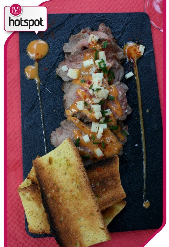 Τα υπέροχα κρασιά συνόδευσαν δύο εξαιρετικά πιάτα με την υπογραφή του σεφ Δημήτρη Τηλέγραφου. Roast beef, medium ψημένο, με σπιτική μαγιονέζα, πάπρικα και γραβιέρα και camembert με μέλι και σουσάμι. Μία ματιά στο μενού με έκανε να διαπιστώσω πως εδώ βρίσκει κανείς όμορφα και προσεγμένα πιάτα που συμπληρώνουν την εμπειρία του wine tasting χωρίς να την επισκιάζουν.