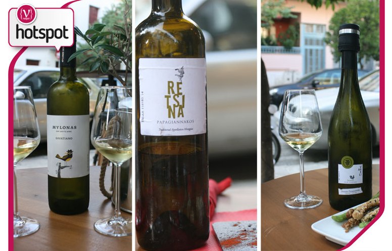 Αρχικά λοιπόν βρέθηκε στο ποτήρι μας το γήινο και σαγηνευτικά απλό σαββατιανό Μυλωνάς. Έπειτα το διαδέχτηκε το πιο βαρύ και αρωματικό σαββατιανό skin contact από βαρέλι, του Παπαγιαννάκου. Τέλος γευτήκαμε μία έντονη ρετσίνα από τον ίδιο παραγωγό. Η Κατερίνα δεν έχανε ευκαιρία να μας μιλάει για τα κρασιά και τις ποικιλίες τους. Μάθαμε λοιπόν πως το σαββατιανό είναι η βασική ποικιλία από την οποία παράγεται η ρετσίνα και ότι το βαρέλι χαρίζει στο κρασί πιο βαθιά και έντονα αρώματα.