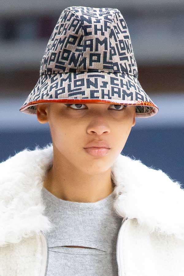 Τέλος, το ΙΤ αξεσουάρ της συλλογής ήταν ένα bucket hat από ζακάρ με τα γράμματα της Longchamp που αναδείκνυε τόσο την σκανδαλιάρικη ενέργεια όσο και τη μυστηριώδη γοητεία του Parisienne ύφους της Longchamp.