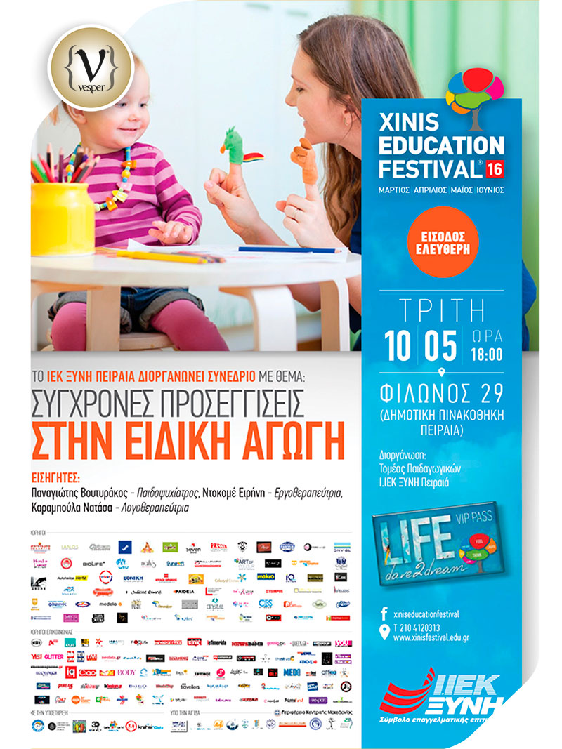 Στο πλαίσιο του XINIS EDUCATION FESTIVAL 2016, του μεγαλύτερου εκπαιδευτικού φεστιβάλ σε Ελλάδα και Ευρώπη που πραγματοποιείται από το ΙΕΚ ΞΥΝΗ πραγματοποιείται το συνέδριο “Σύγχρονες Προσεγγίσεις στην Ειδική Αγωγή”.