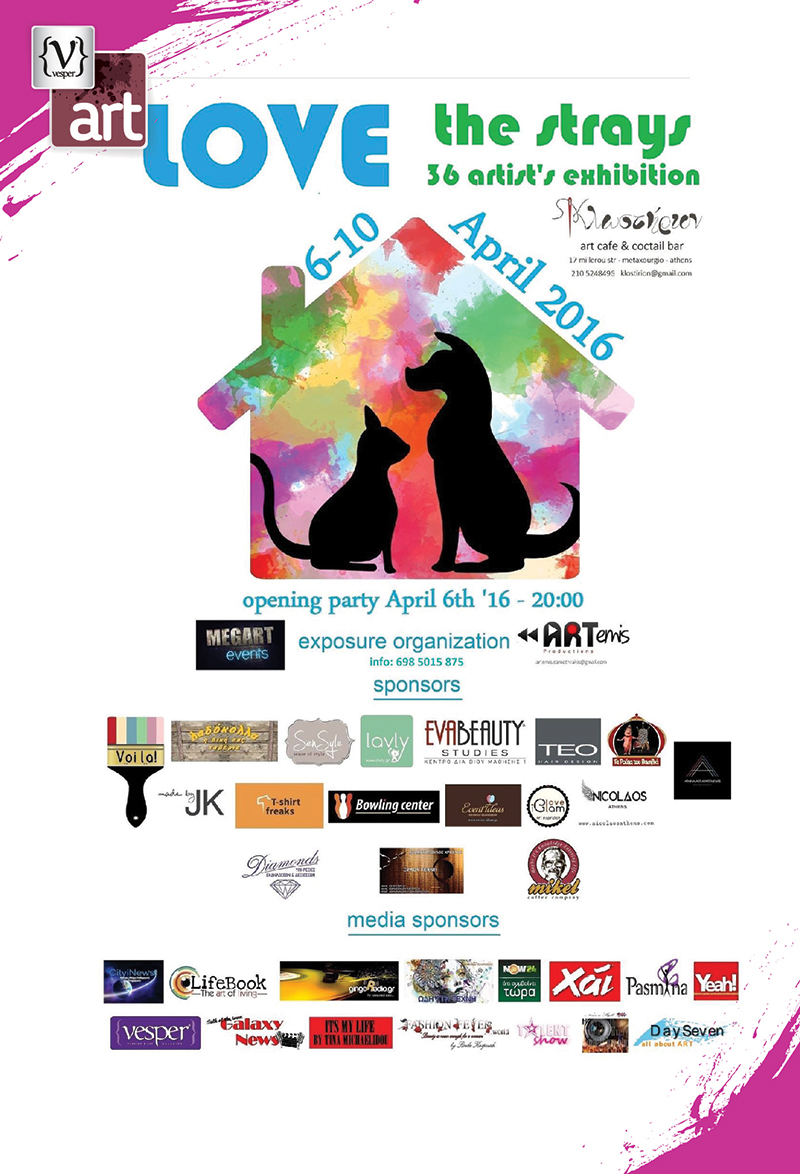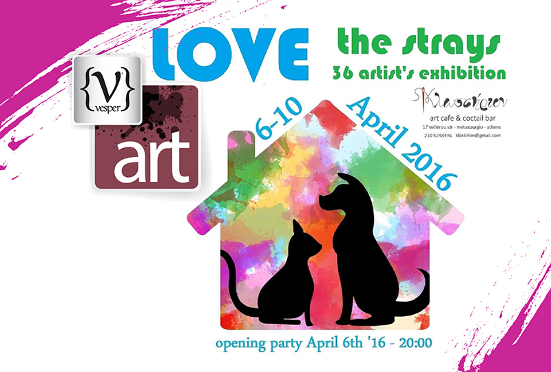 Η έκθεση πολυμορφικής Τέχνης “Love the Strays” θα διαρκέσει από τις 6 έως τις 10 Aπριλίου 2016 και θα λειτουργεί καθημερινά από τις 12:00 έως τις 22:00.