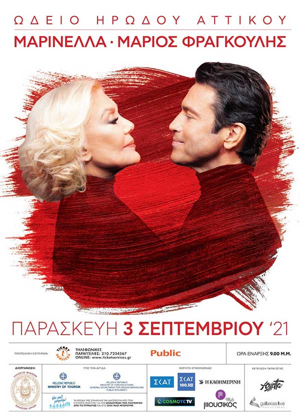Προπώληση: https://www.ticketservices.gr/event/marinella-marios-frangoulis- herodeion / Καταστήματα Public / Ταμεία Φεστιβάλ Αθηνών.