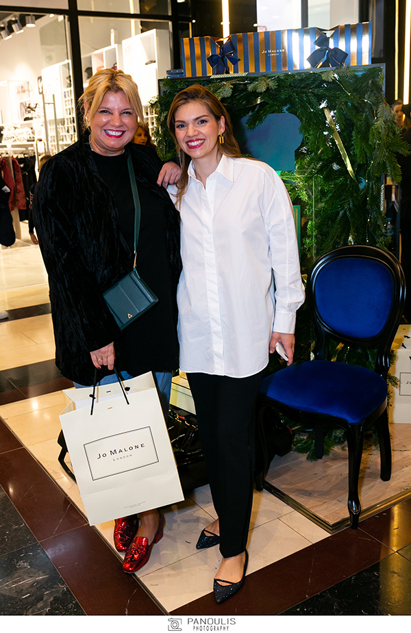 Οι μεθυστικές νότες από τα signature fragrances του οίκου Pine & Eucalyptus, Orange Bitters, Amber & Sweet Orange αλλά και του συλλεκτικού Rose & Magnolia κυριολεκτικά πλημμύρισαν την ατμόσφαιρα του εμπορικού κέντρου, δημιουργώντας το τέλειο αρωματικό σκηνικό για τη γιορτινή περίοδο. Στο τέλος της εκδήλωσης, κάθε καλεσμένος έλαβε το δικό του δώρο, στη χαρακτηριστική πολυτελή συσκευασία της Jo Malone London, ειδικά προσωποποιημένο με τα αρχικά του, υπηρεσία μάλιστα που θα προσφέρεται σε όλα τα σημεία πώλησης του οίκου κατά την περίοδο των Εορτών.