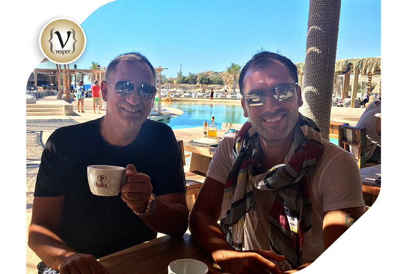 To Santanna της Μυκόνου επισκέφτηκε ο γνωστός PR Manager, Γιώργος Ντάβλας, όπου απόλαυσε τον espresso του με την πλούσια γεύση και το εκλεκτό άρωμα του ιταλικού καφέ Portioli, παρέα με τον John Choes.