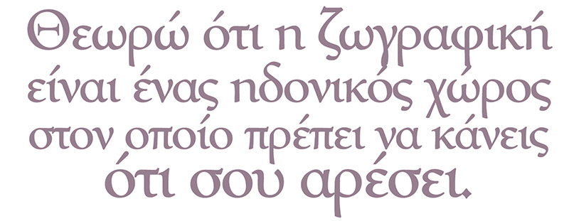 Λειτουργώ στην ζωγραφική σαν το χειρουργό. Ο χειρουργός αναλόγως με τον ασθενή και την πάθηση του ασθενούς χρησιμοποιεί τα αντίστοιχα εργαλεία. Έτσι και εγώ χρησιμοποιώ κατά περίπτωση ό,τι χρειάζεται.