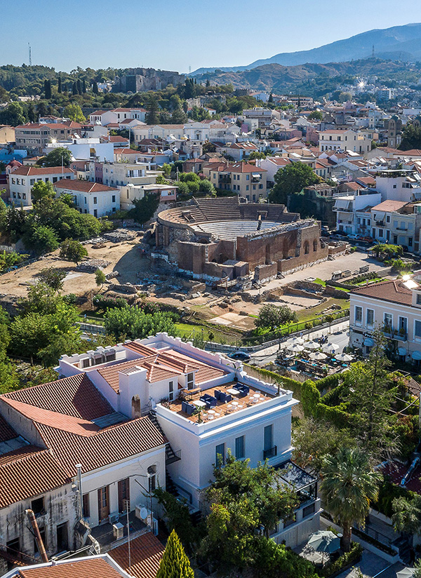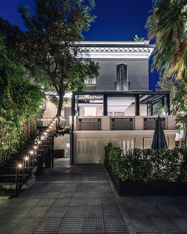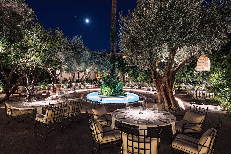 Το πίσω μέρος του ξενοδοχείου όπου δεσπόζει ένας μαγευτικός κήπος, μεταμορφώθηκε σε ένα fine dining εστιατόριο που αποτελεί ιδανική επιλογή για ένα διάλειμμα, breakfast και lunch, καθ’ όλη τη διάρκεια της ημέρας.
