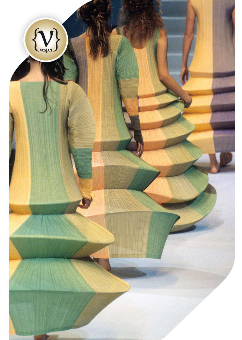 Ο Issey Miyake πάλι είναι ολόκληρο κεφάλαιο από μόνος του, καθώς από το 1971, δεν έχει σταματήσει να δουλεύει με τέτοιο τρόπο πάνω στη μορφή και τα υλικά, που το αποτέλεσμα έχει, να κάνει πολύ περισσότερο με γλυπτική παρά με μόδα. H εμβληματική σειρά ρούχων «Pleats Please», την οποία ο Miyake λάνσαρε το 1993 έχει αφήσει ιστορία στο τρόπο, που προσέγγισε τις πτυχώσεις και από τότε επαναλανσάρεται κάθε χρονιά.