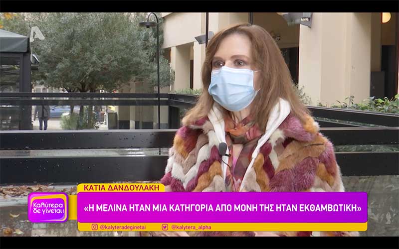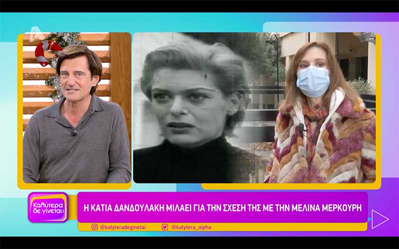 Η Κάτια Δανδουλάκη παραχώρησε συνέντευξη στον Θοδωρή Κουτσογιαννόπουλο και την εκπομπή “Καλύτερα Δεν Γίνεται” με οικοδέσποινα την Ναταλία Γερμανού στον Alpha. Η γνωστή ηθοποιός μίλησε για την Μελίνα Μερκούρη με αφορμή την συμπλήρωση φέτος των 100 χρόνων από την γέννηση της, την οποία είχε την τύχη να τη ζήσει από κοντά.