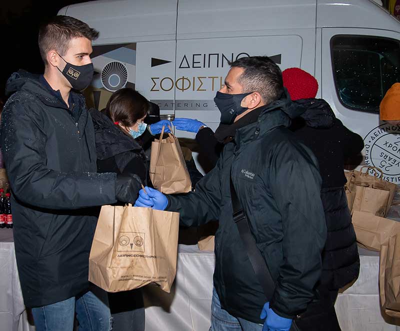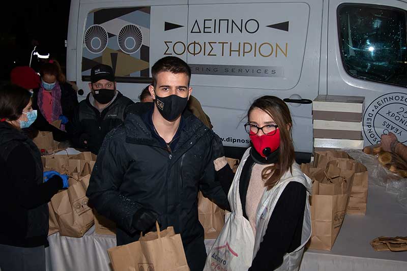 Το ειδικά διαμορφωμένο βαν του Δειπνοσοφιστήριον Catering, μοίρασε για ακόμη μια φορά ποιοτικά γεύματα σε άστεγους συνανθρώπους μας, που δοκιμάζονται ίσως λίγο περισσότερο αυτή την εποχή. Μια απλή πράξη, που χάρισε ελπίδα και αισιοδοξία.