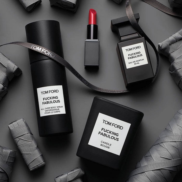 Η σειρά αρωμάτων αποτελείται από Eau de Parfum Tom Ford Private Blend EDP Fucking Fabulous, ένα Body spray Tom Ford All Over Body Spray Fucking Fabulous και ένα αρωματικό κερί Tom Ford Private Blend Candle Fucking Fabulous. Φυσικά τη σειρά ολοκληρώνει το Tom Ford Lip Color Fucking Fabulous σε μια βαθιά κόκκινη απόχρωση.