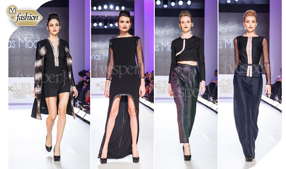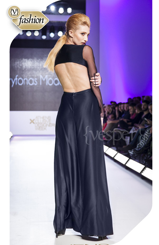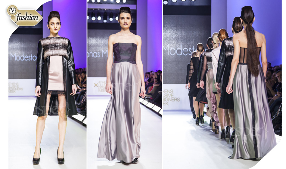 Ο Τρύφωνας Μοδέστου μας παρουσίασε μια συλλογή εμπνευσμένη από την αγαπημένη του πατρίδα, την Κύπρο, με ονομασία “A walk through the years, Landscape of a beautiful afternoon” στην 17η Athens Xclusive Designers Week. Είδαμε ένα όμορφο πάντρεμα του κλασικού με το μοντέρνο, σε σύνολα με κλασικά κομμάτια, που είχαν όμως ένα μοντέρνο twist. Έτσι το little black dress, το maxi φόρεμα και το φόρεμα σε A γραμμή είχαν μοντέρνα κοψίματα αλλά και ενδιαφέροντα υφάσματα με μοντέρνους χρωματικούς συνδυασμούς. Γενικώς ήταν μια όμορφη και κομψή συλλογή που είχε κάτι από vintage αίγλη σε μοντέρνα εκδοχή.