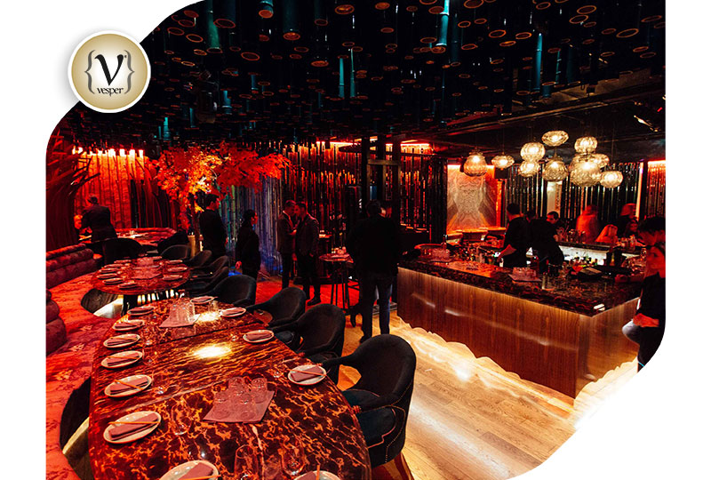 Ένα υπέροχο σκηνικό και η ατμοσφαιρική ενέργεια του χώρου, σε μεταφέρει στην άγρια φύση της Ασίας, με στοιχεία όπως το ξύλο και το μάρμαρο να επικρατούν παντού, σε συνδυασμό με minimal λεπτομέρειες και γεωμετρικές κατασκευές με τομές που παραπέμπουν σε φυσικούς κορμούς δένδρου. Το highlight δεν είναι άλλο από την επιβλητική οροφή, διακοσμημένη με ασύμμετρα, φωτιζόμενα bamboo.