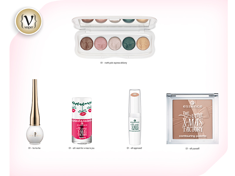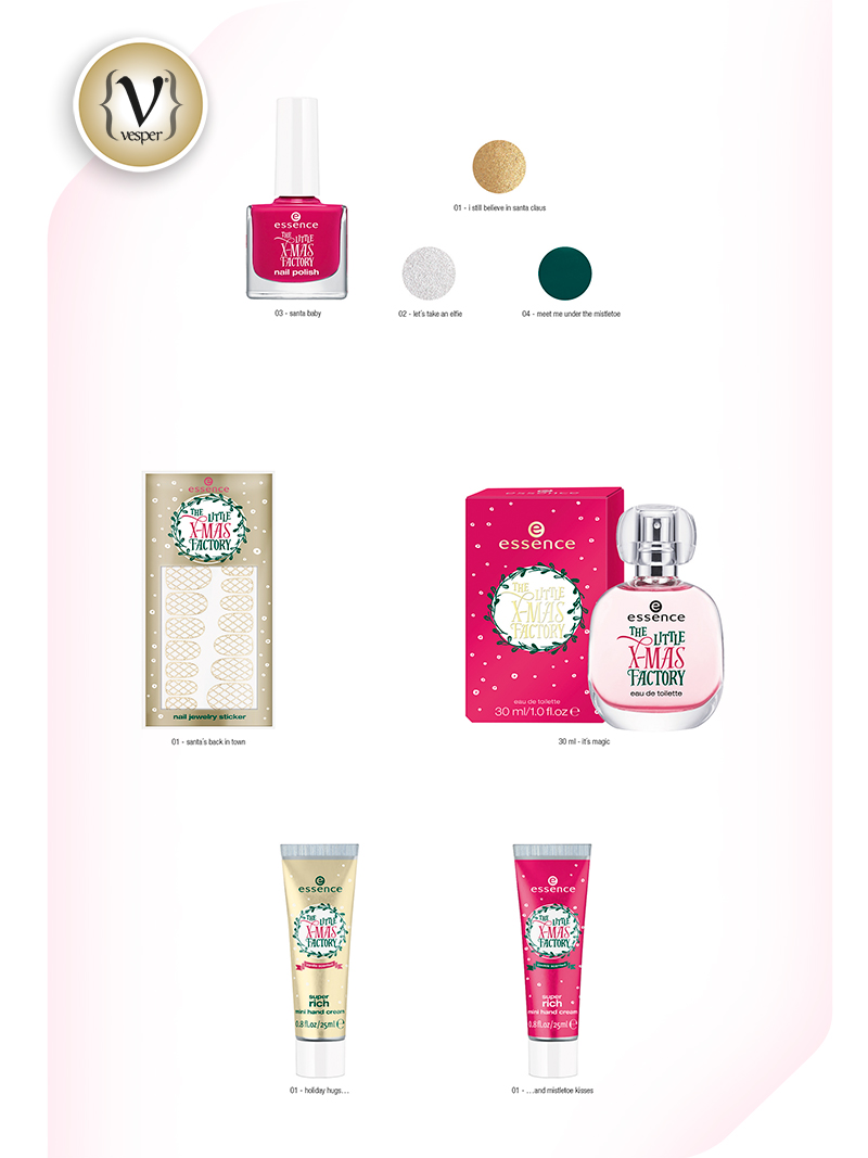 Η νέα limited edition collection, “the little x-mas factory” από την essence ήρθε αυτά τα Χριστούγεννα για να κάνει πραγματικότητα τις ευχές σας. Με τα εορταστικά χρώματα του πράσινου και του χρυσού να πρωταγωνιστούν και ένα υπέροχο ζεστό και γλυκό άρωμα αυτή η σειρά θα σας μαγέψει.